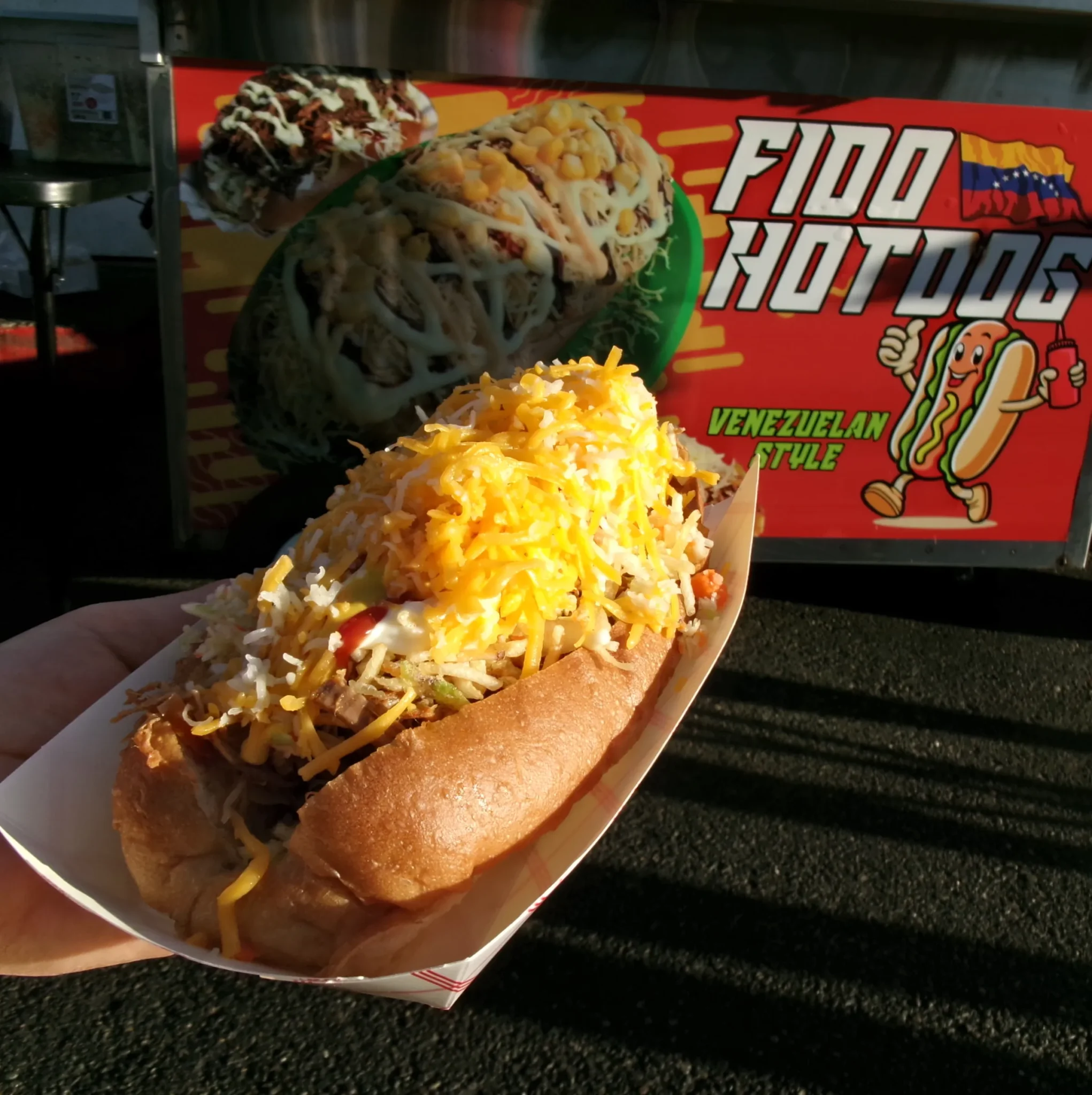 Seattle’s best-kept street food secret. These fully loaded Venezuelan-style hot dogs come stacked with shredded beef, coleslaw, crushed chips, house-made sauces, quail eggs, cheese, and more — all on a pillowy bun.