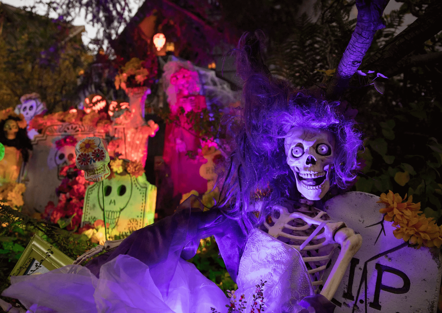 Every Halloween season, the Montlake neighborhood turns spooky-spectacular with front-yard cemeteries, massive skeletons, ghosts dripping from trees, fog and sound effects—especially around the famed “Hauntlake Cemetery” house.