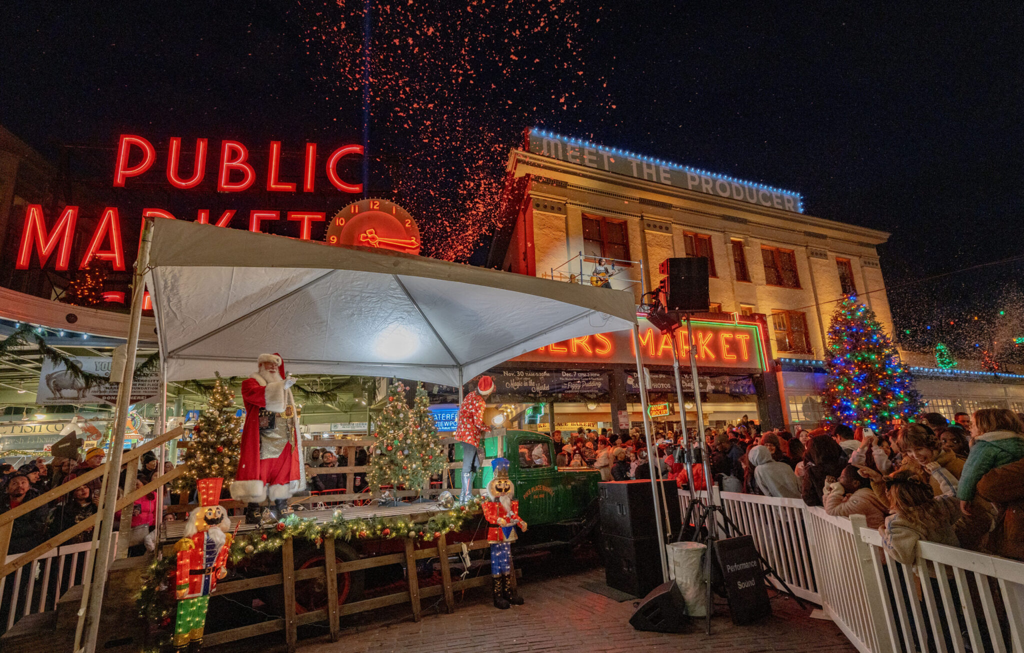 Bellevue’s enchanting free nightly parade turns downtown into a winter wonderland with toy drummers, dancers, illuminated floats, twinkling lights, and artificial snowfall β perfect Thanksgiving weekend starter with Santa meetups and shopping!